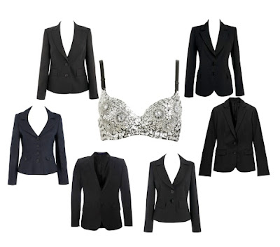 Jeg forestiller mig at kreere sættet selv ved en paillet BH og en enkel blazer udover. Elsker kontrasten mellem det meget maskuline og meget feminime.